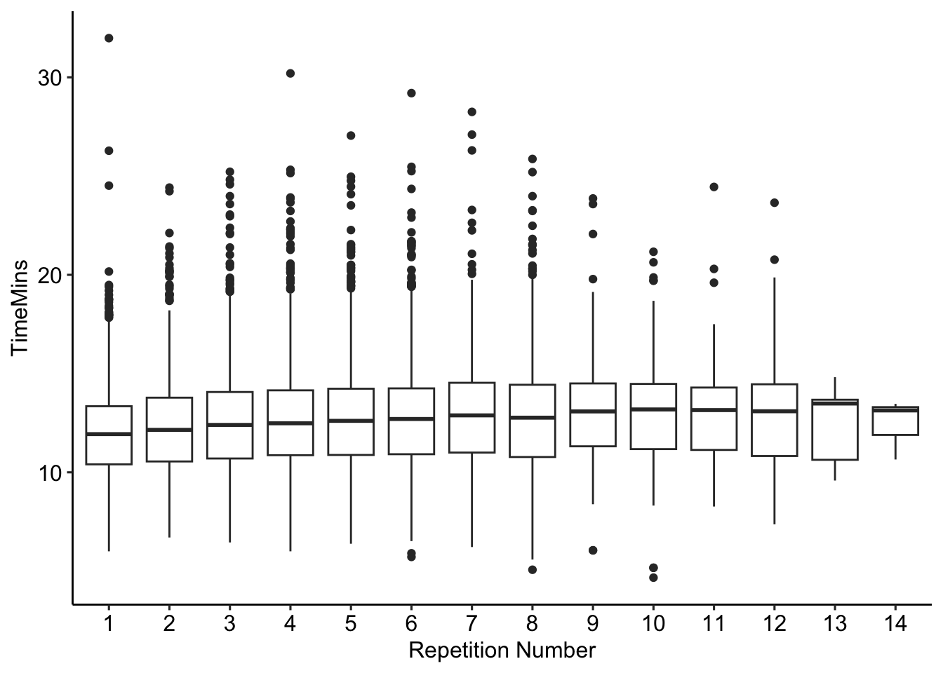 For 30 years, the Explorer’s Club of Pittsburgh has run a mountaineering school through the winter, guiding students in outings and exercises to build advanced skills for mountain climbing. Every student of the mountaineering school trains on the stairs of the University of Pittsburgh’s Cathedral of Learning. A typical training session consists of multiple repetitions up the Cathedral’s 34-story stairwell, carrying a weighted backpack to simulate real mountain ascents. I analyzed data from 10 years of training logs, including 129 students and 10,000+ repetitions of the stairs. From 2011-present, students’ climbing paces exhibited consistent response to heavier packs and footwear.