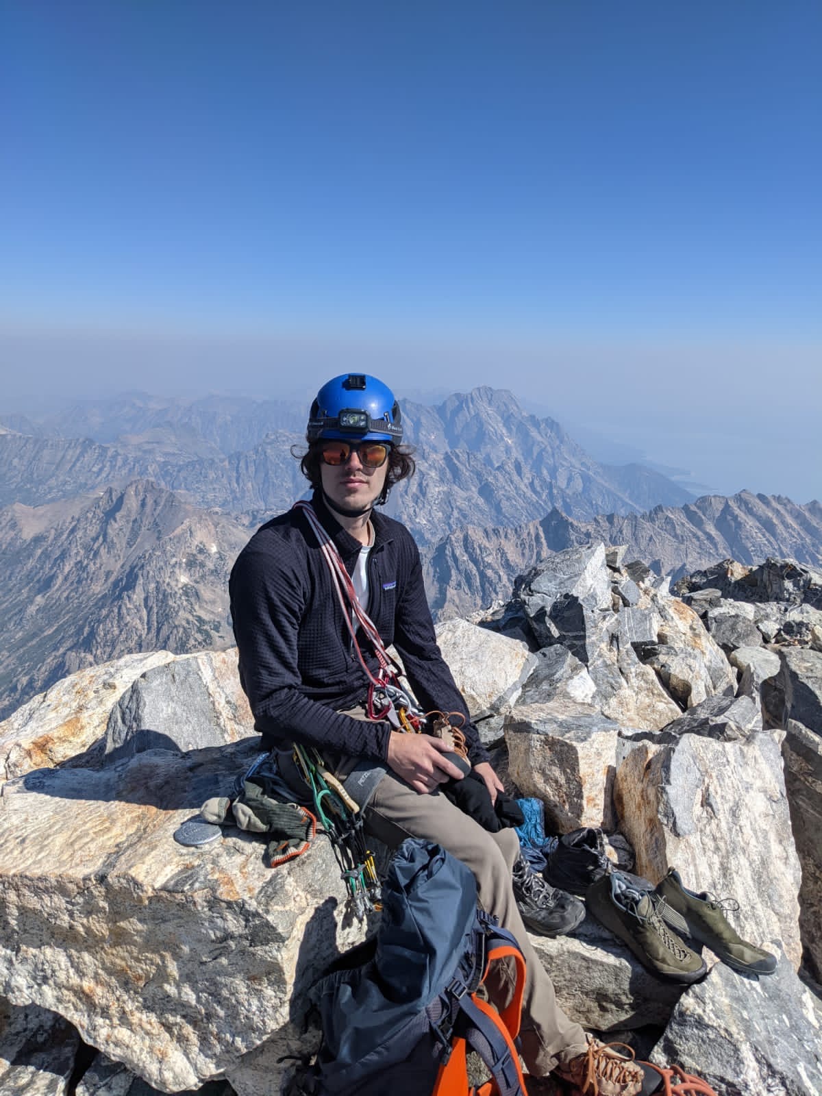 My first real mountaineering trip, climbed overnight between August 12-13, 2021. Donnie and I I summitted the Grand Teton using a classic rock climbing route (Exum Ridge 5.5, III). We were on-route/bivying for a total car-to-car time of 32 hours and 20 minutes. Amazingly, this same feat has been accomplished in a record-setting 2 hours and 53 minutes (FKT: Andy Anderson).